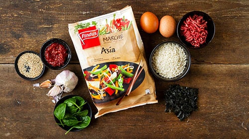 Das beliebte koreanische Gericht kommt in unzähligen Variationen daher. Eines ist sicher: Jede einzelne davon schmeckt unfassbar gut. Um aber nicht stundenlang in der Küche stehen und Gemüse schneiden zu müssen, empfehlen wir unseren FINDUS Gemüsemix Asia. Der Fantasie sind dennoch keine Grenzen gesetzt, denn das Bowlgericht eignet sich auch bestens, wenn man aus den Resten im Kühlschrank etwas Einzigartiges zaubern möchte. En Guete!