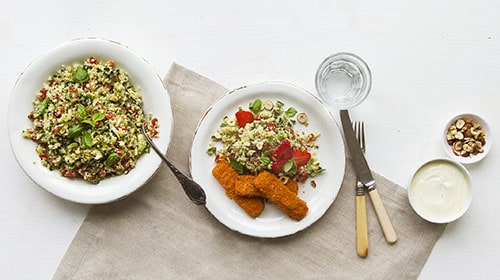 - Fisch-Sticks anbraten und mit dem Blumenkohl-Couscous servieren.