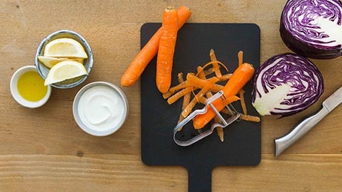 - Den Karotten-Rotkraut-Salat zubereiten.