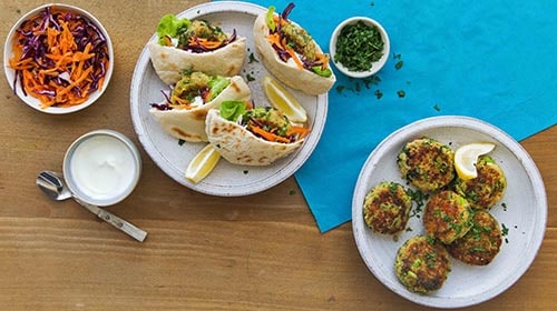 Quinoa ist derzeit in aller Munde. Das Pseudogetreide liefert viel Eiweiss und alle acht essenziellen Aminosäuren, die der Körper nicht selbst produzieren kann. Aber wie serviert man den Inkareis, dass er der ganzen Familie schmeckt? Natürlich in Form von kleinen Burgern! Diese werden zusammen mit einem bunten Salat und einer feinen Joghurtsauce in eine warme Pitatasche gefüllt. Kinder können beim Formen der Bratlinge und beim Befüllen der Pitabrote mithelfen und so selbst ihre ganz eigene Tasche kreieren.