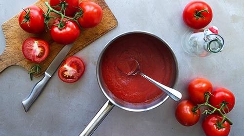 Die Tomaten in Würfel schneiden, die Zwiebel fein hacken. Alles mit dem Essig und dem Zucker aufkochen. Das Chilipulver beigeben und bei mittlerer Hitze ca. 20 Minuten zugedeckt köcheln lassen. Mit Salz und Pfeffer abschmecken. Die Sauce mit einem Stabmixer oder im Mixer pürieren und in eine sterilisierte Flasche füllen.