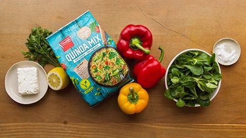 Rote, gelbe oder grüne Peperoni kommen immer gut an – gefüllt mit Quinoa wird daraus ein richtiges Powergericht. Quinoa ist proteinreich, sättigt lange und eignet sich auch für die Low-carb-Ernährung. Die Zubereitung gelingt mit dem FINDUS Quinoa Mix in wenigen Schritten – ruckzuck ist ein leichtes Essen auf dem Tisch, das sowohl als Hauptspeise als auch als Beilage köstlich mundet.