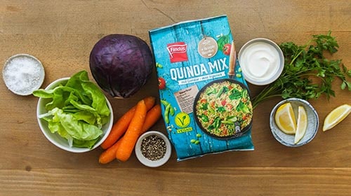 - Den Karotten-Rotkraut-Salat zubereiten.