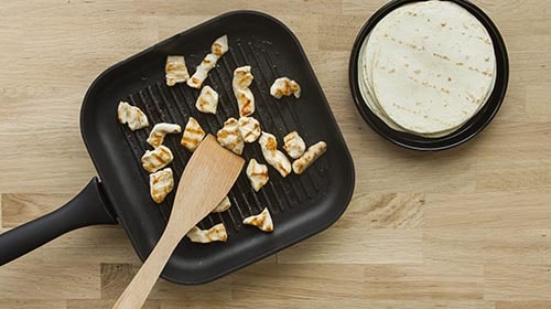 - Das Fleisch anbraten und die Tortillas erwärmen.
