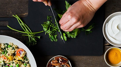 Kürbisse gehören in der kalten Jahreszeit einfach dazu, stecken sie doch voller wertvoller Inhaltsstoffe. Ausserdem lassen sie sich ganz einfach zubereiten. Kombiniert mit Couscous und einer grünen Sauce wird aus dem gesunden Herbst- und Wintergemüse ein kontrastreiches Gericht, das gute Laune macht und viel Energie verleiht. Für eine vegane Variante einfach Sojaprodukte verwenden – so schmeckt es allen am Tisch.