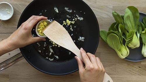 - Ajouter le pak-choï et le mix de légumes Asia.